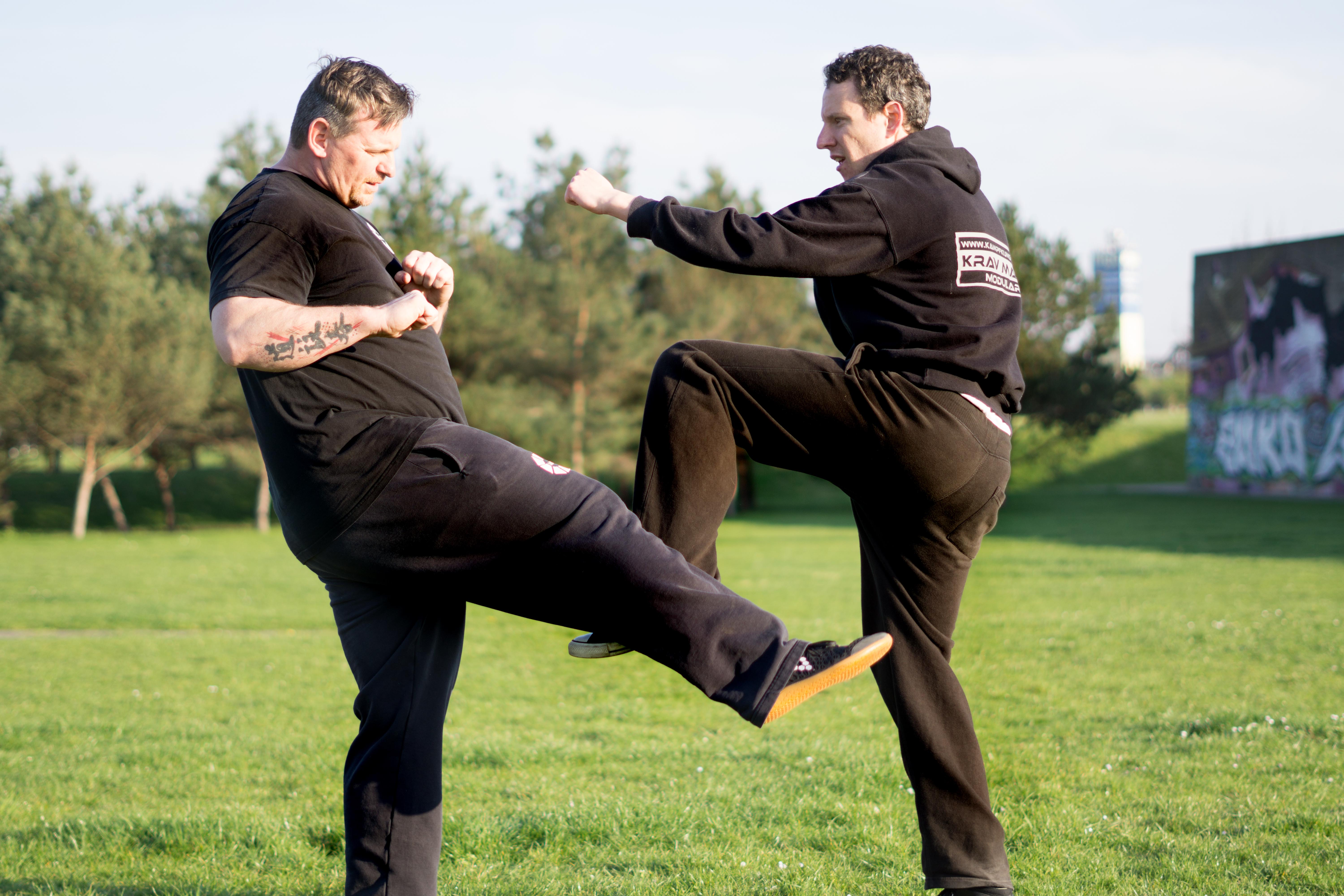 - effektive Verteidigungstechniken (auch gegen scharfe und stumpfe Waffen